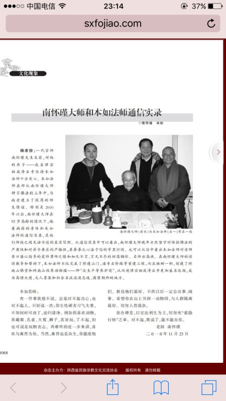 该期杂志也刊登了南怀瑾与释本如往来的书信,南怀瑾在给释本如的信中写道:“你生性顽劣习气太重,不知何时可改了,还归清净。例如你喜欢动物,养藏獒、孔雀、大鹫、狮子,真好玩,了不起,但也可以说是玩物丧志,再难听的进一步来讲,喜欢与禽兽为伍。”
