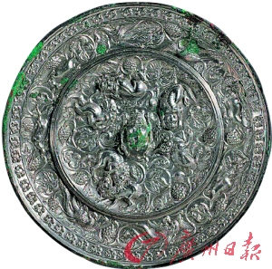 可见唐代的海兽葡萄镜,既有浓厚的异域色彩,又有丰富的传统文化意味,是中外文化交流的产物。它集各种吉祥物于一体,寄托着人们对平安、幸福、富贵、功名、长寿、多子多福的追求。