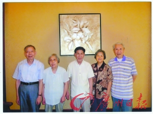 2012年6月,张士昌偕夫人来广州与老同学会面(从左至右:池惠民、张士昌夫人池鸣珠、张士昌、我夫人张巧运、我)。