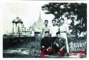 1953年10月,我们几个同学好友相约到黄花岗相聚,之后便奔赴各地大学求学(前排左为沙挺欣,右为彭星辉;后排从左至右:张士昌、陈育焜、沙挺清)。