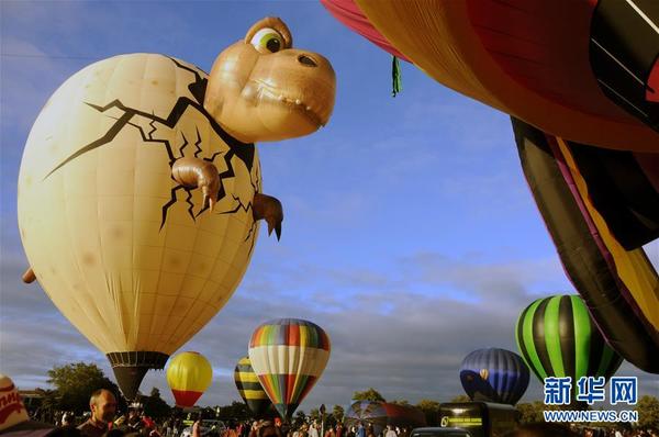 这是3月20日在位于新西兰北岛的怀卡托地区汉密尔顿市拍摄的怀卡托国际热气球节现场。当日,一年一度的怀卡托国际热气球节在汉密尔顿市闭幕。由于天气不佳,当天的谢幕升空表演未能如期举行,仅作地面展示。本届怀卡托国际热气球节于16日开幕,汇集了全球各具特色的热气球参加。本届的明星热气球包括“赛车”、“南瓜马车”、“恐龙宝贝”和一头30米高的“大象”。新华社记者田野摄