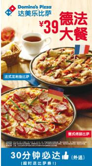 这个春天,达美乐更推出新品德式烤肠比萨和法式龙利鱼比萨,仅39元起,让你足不出户,尝尽德法大餐!