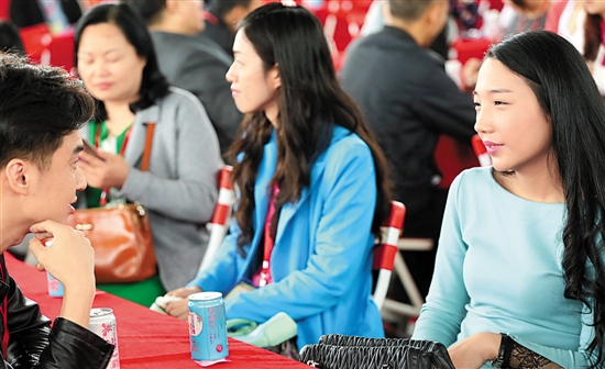 当天的“面对面玫瑰传情交流区”,不少女生先上台介绍自己,这令两位主持人也不由调侃:“女生们都这么主动了,男生们是不是该勇敢一点?”在他们的鼓励下,一位位原本还有些羞涩的男生逐个上台毛遂自荐。一位90后男生自我介绍:“我来自梅州,我来相亲的想法很简单——我想有个家!”虽然只有简单的一句,但却赢得了台下不少女嘉宾的共鸣。在他下台后,不少女生都主动向他发出谈话邀约。