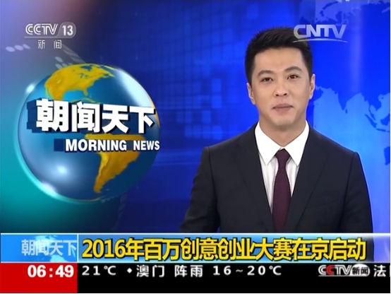 3月17日,央视《朝闻天下》栏目,以长达两分钟的时间播报了“2016百万创意创业大赛在京启动”的新闻,在文创产业中引起强烈反响。