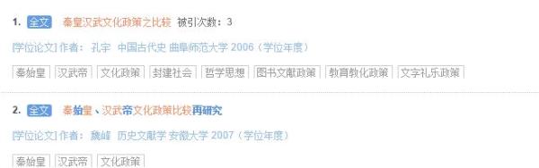 魏峰论文则写道:“在对秦皇汉武的文化政策有了一个大致的梳理后,我们可以看出二者的文化政策既有相同点也有不同点。作为国家的最高统治者,为了维护统一局面,而采取相同的文化政策是不难理解的。此外,由于二者所处的历史时期不同,再加上主观因素的作用,使二者所颁布的文化政策有所不同也是必然的。下面,我们就具体分析一下二者文化政策的异同。”