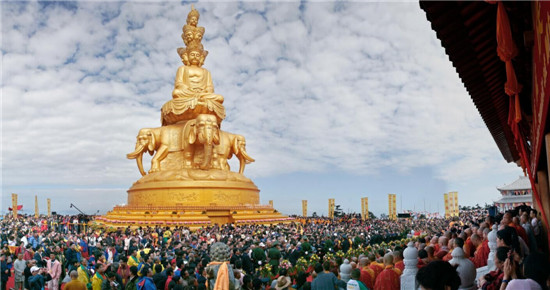 落成近10年 金顶普贤像将“贴金”