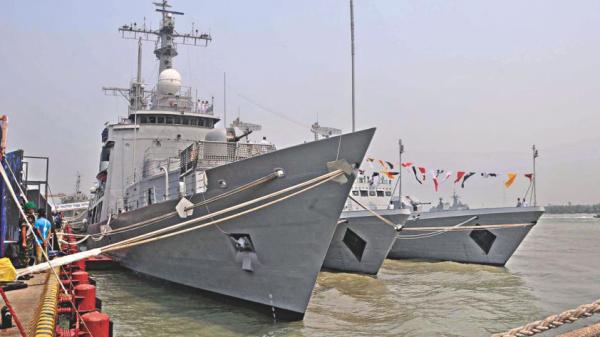 三艘新服役的战舰停泊在孟加拉吉大港海军学院码头