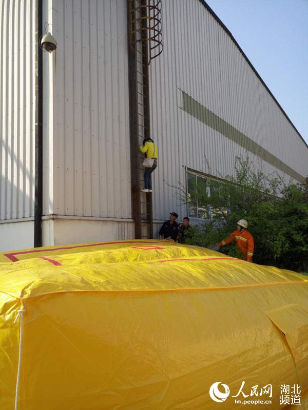 “110吗,这里有人要跳楼!”3月25日早上7时30分许,黄石市公安局铁山分局接到110指令,称某工厂有员工准备跳楼。接警后,鹿獐山派出所副所长詹传德立即与同事一起驱车赶到现场,发现一名身穿黄色外套的年轻女子悬坐在十几米高的厂房顶层边缘,情绪激动,楼下还聚集着大量议论纷纷的该厂员工。