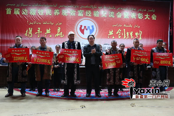 亚心网讯(记者 肖君)身穿哈萨克族传统服饰袷袢的马那提·努尔旦别克,手捧22000元的大红色奖牌与证书,神气十足地站在主席台前接受媒体“长枪短炮”的轮番“轰炸”。作为福海县发展骆驼产业“带头致富奖”、“突出贡献奖”的双料获奖者,他拿到了数额最大的一笔奖金及一次香港、澳门旅游的机会。