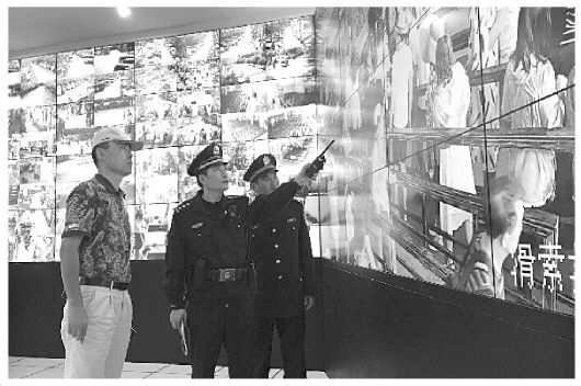图为保亭县公安局三道派出所民警巡查景区监控。