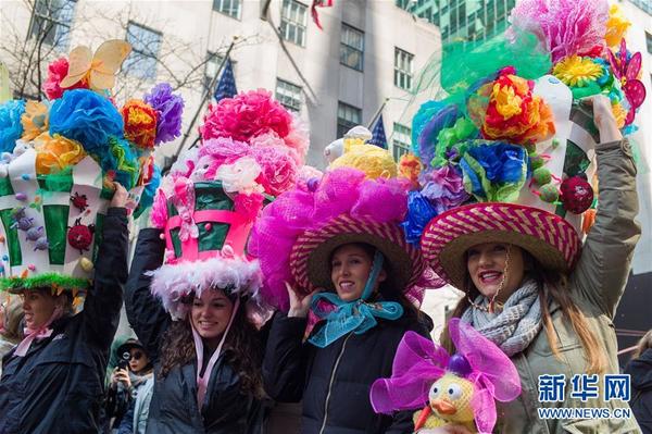 3月27日,人们在美国纽约参加复活节游行活动。当日,一年一度的复活节游行在美国纽约第五大道举行。 新华社记者李木子摄