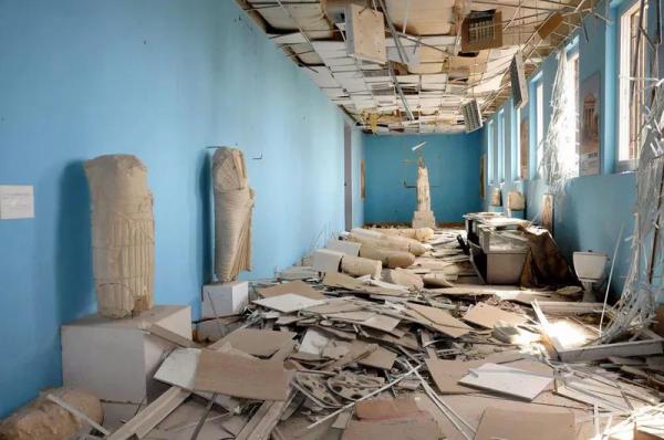 叙利亚官方新闻社SANA27日公布的帕尔米拉博物馆照片,IS损害了其中大量雕塑。
