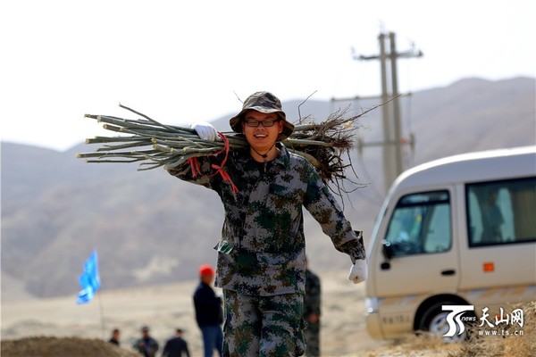 天山网讯(通讯员年磊 何阳摄影报道)春风拂面,万物复苏,又是一年植树季。3月29日,新疆博湖县阿洪口万亩葡萄基地人声鼎沸,彩旗飘飘,到处是一片热火朝天的植树场景,来自全县1200余名各族干部群众分赴22个栽植区域,竞相为“美丽博湖”添新绿。据统计,当日,共植树7万余株,造林面积330亩,掀起全县2016年全民义务植树活动高潮。