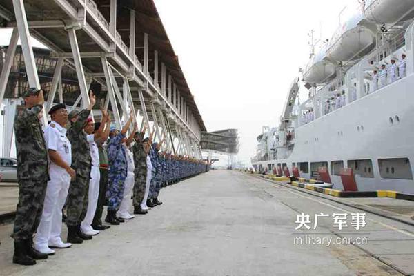 和平方舟医院船驶离马亚西亚巴生港,舰上医护人员及官兵挥手道别。