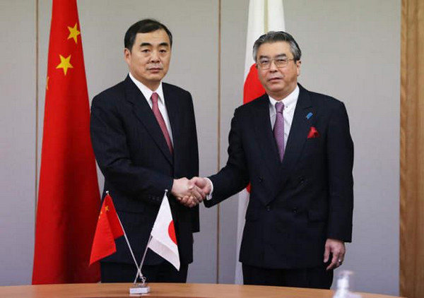 2月29日,日本首都东京,中国外交部部长助理孔铉佑(左)和日本外务省外务审议官杉山晋举行中日副外长级磋商。