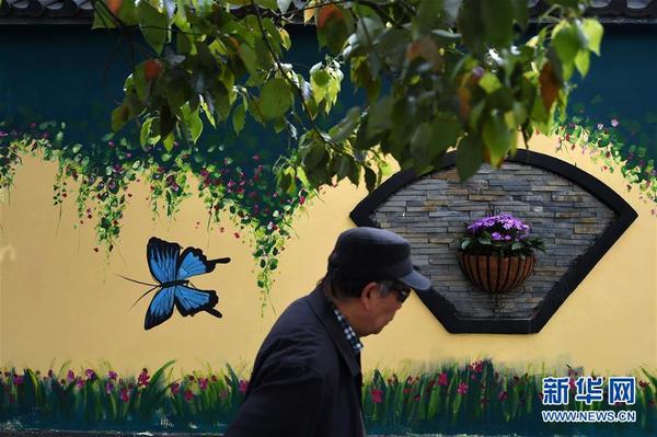 3月31日,行人经过杭州市密渡桥路一幢配有时尚墙绘的临街居民楼。近日,浙江省杭州市拱墅区密渡桥路的几幢临街居民楼的外墙配上整幅的时尚墙绘,并统一安装窗框、雨篷、空调机架,由原来陈旧杂乱的外立面变身为色调鲜艳的“花园洋房”,成为城市的一道新风景。新华社记者黄宗治摄