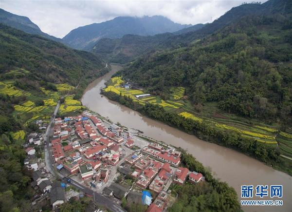 俯瞰荥经县天凤乡凤槐村槐子坝聚居点(3月24日摄)。新华社记者 江宏景摄