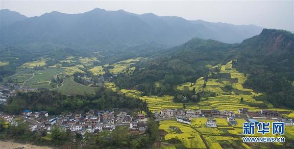 春天的芦山地震灾区,万木复苏、百花盛开。从空中俯瞰,农田、群山、溪流、道路与一个个美丽的新家园相互映衬,构成一幅幅乡村画卷,处处充满生机。四川省雅安市各县区经过近3年的重建,截至目前,78792户农村居民住房重建和232个新村聚居点已全面完成;33696套城镇居民住房重建全面完成并同步分房;2160个灾后恢复重建总规实施项目,累计完工2064个……生产生活条件和经济社会发展得以恢复并超过震前水平。新华社记者 江宏景摄
