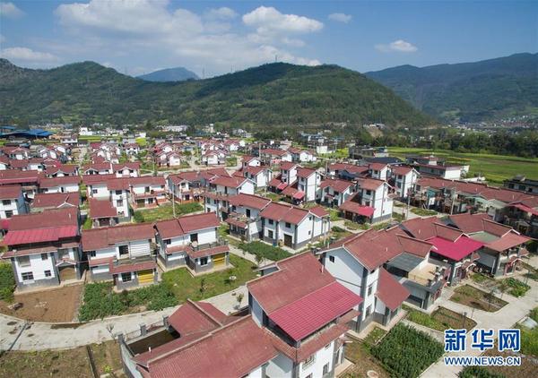 春天的芦山地震灾区,万木复苏、百花盛开。从空中俯瞰,农田、群山、溪流、道路与一个个美丽的新家园相互映衬,构成一幅幅乡村画卷,处处充满生机。四川省雅安市各县区经过近3年的重建,截至目前,78792户农村居民住房重建和232个新村聚居点已全面完成;33696套城镇居民住房重建全面完成并同步分房;2160个灾后恢复重建总规实施项目,累计完工2064个……生产生活条件和经济社会发展得以恢复并超过震前水平。新华社记者 江宏景摄