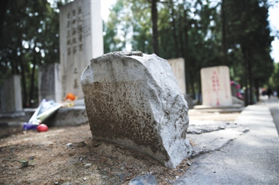 昨日,八宝山人民公墓,一座老墓的墓身已经断裂。新京报记者尹亚飞摄