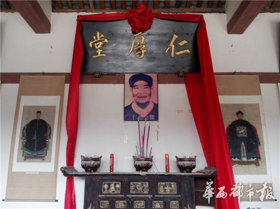 祭拜完先祖陵墓,周氏后人又来到周氏宗祠,准备拜谒祠堂。周氏宗祠的大堂,叫仁厚堂,供奉着周家始祖仁德公的画像,周必润老人给家族里的小辈们介绍,“仁德公生于明末清初,是四川周姓一脉的先祖……”