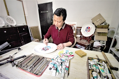 每一项瓷刻作品的完成,都讲究慢工出细活。一“幅”戏剧脸谱瓷刻,看似造型简单,但往往单色上盘就得进行30遍层层覆盖。