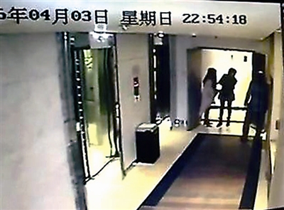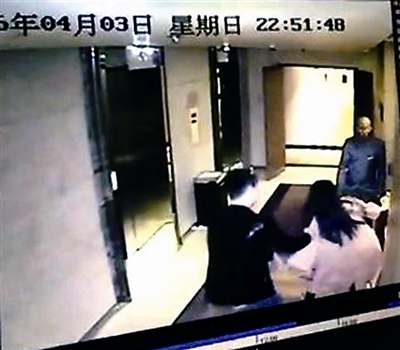 孟小姐用手机从酒店监控视频中翻拍下自己遇袭的场景视频截图