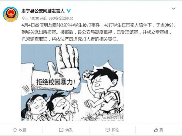 网曝河北一中学生疑两次遭社会青年殴打,警方成立专案组调查