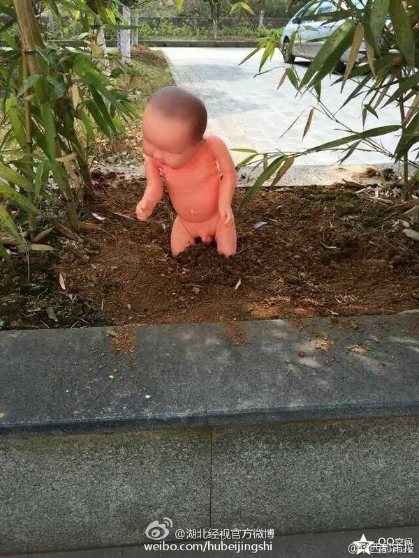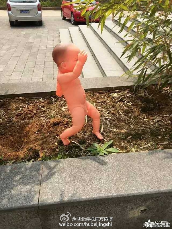 【吓死宝宝!大学花坛里长出娃娃 学生:艺术作业】