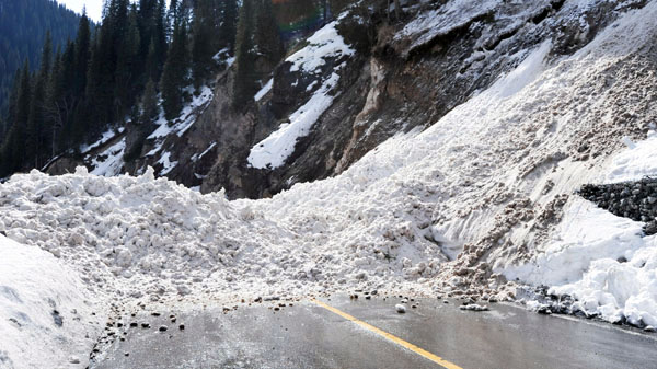 2016年3月12日,积雪站旁的国道上发生了一次小型雪崩。 郝建盛 图