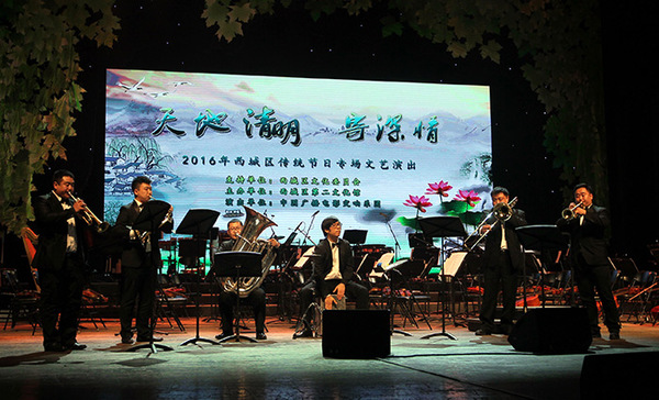 人民网北京4月8日电 4月5日晚,天桥剧场上演了一幕精彩的演出,由中国广播电影交响乐团奉献的《天地清明寄深情——2016年西城区传统节日专场文艺演出》,让数百名观众欣赏了一场高水平的中外经典影视作品视听盛宴。