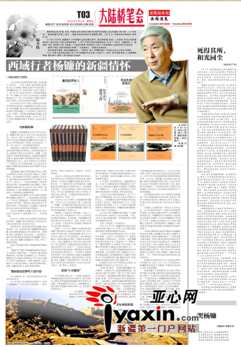 “我终于明白,我把青春留在新疆了,还有我的心”他曾经这样说道。“传学西域开新路,沥血边疆献此生”(陈柏中)如今,杨镰的离世,注定会让这片土地大为减色。今日,新疆经济报和亚心网刊发了关于杨镰的纪念专辑,从他的个人经历,学术成果等等,让读者看到新疆,看到绿洲,看到人类文明成长的身影。