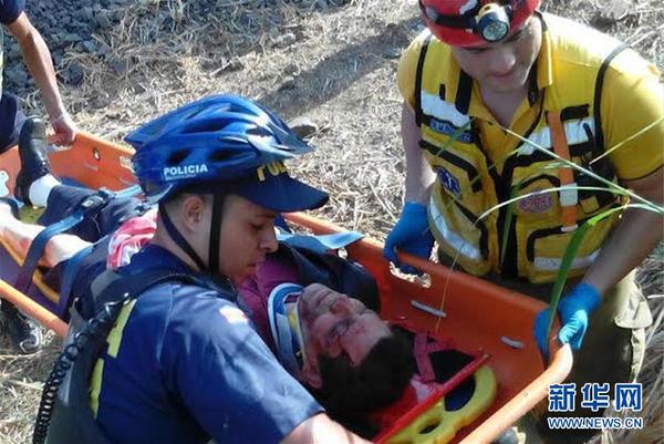 4月8日,在哥斯达黎加首都圣何塞,红十字会救援人员在事故现场转移伤员。