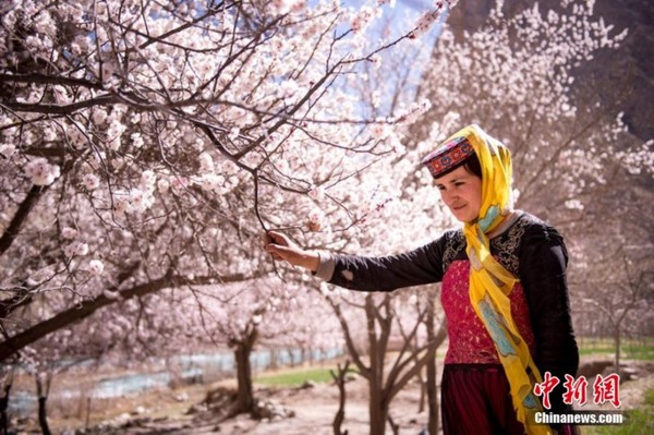 3月底4月初,位于帕米尔高原深处的新疆塔什库尔干塔吉克自治县大同乡杏花朵朵绽放,云霞般的花朵在枝头傲然怒放。粉红色的杏花像云彩般飘满峡谷,在蓝天白雪、小桥流水的映衬下使人产生一种如梦幻般的感觉,疑似到了陶渊明描绘的“世外桃园”。大同乡位于帕米尔高原的大山深处,平均海拔约2800米,素有“人间仙境——杏花村”的美誉,距塔什库尔干县城约180公里。祁军 摄