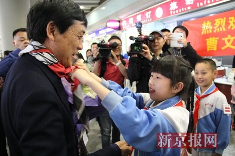 新京报快讯 (记者李馨 实习生孙一)4月9日,刚刚获得2016年国际安徒生奖的作家曹文轩从意大利博洛尼亚国际童书展回京,一下飞机,已有多家媒体在机场等候采访。