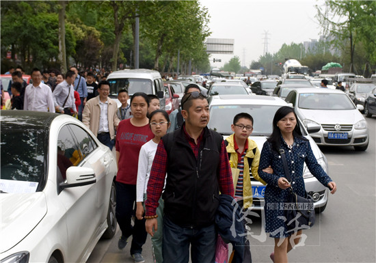 来自德阳的李先生早上带着孩子参加了希望杯数学竞赛。国奥赛是下午两点开始,当他们赶到西华大道时已经一点四十多,看着眼前被堵得水泄不通的道路,李先生带着孩子提前下车,一路小跑才刚刚赶到考场。
