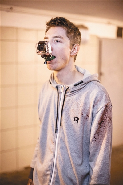 1 《硬核亨利》主要是用GoPro Hero3 Black Edition镜头拍摄的,剧组制作了一种特制的头盔,将摄像头安装在演员嘴部位置。之所以要把摄像头放在嘴部位置,是因为这个高度拍出来的画面最符合我们人眼的视角,也不会挡住演员视线。这一点是导演奈舒勒多次实验逐渐出来的。