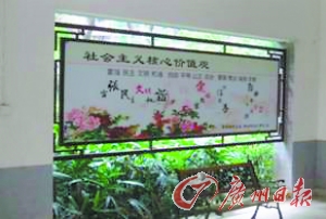 南沙区南北台社区将散乱的宣传阵地“化零为整”,重新进行规划建设,形成了社区宣传整体效果。社区随处可见一幅幅生动形象的公益广告,它们将社会主义核心价值观理念与传统文化相结合,与“中国梦”主题宣传深度交融,使社会主义核心价值观深深地融入群众心中。