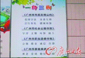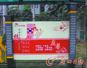 花都区围绕“24个字”设计了4套共40多幅融入本区特色的系列公益广告,印制了一批《一约三则》发放到社区,制作了核心价值观宣传专用的小型铝合金宣传栏,为公益宣传提供宣传阵地,并率先在金菊社区进行示范建设。