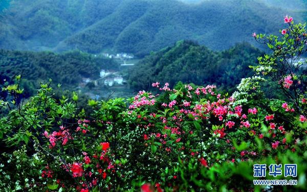 四月,大别山腹地的安徽省霍山县一片春光明媚景色,青翠的山峦云蒸霞蔚,漫山遍野的映山红绚丽似火,处处是春的涌动。佛子岭、屋脊山、黑虎尖等大自然美景,已成为游人踏青、观花、旅游、摄影的好去处。新华社记者陶明摄
