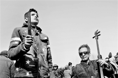 二三百个草根艺人,在前辈艺人唱了700年的这块麦田上,唱着猴年的希望。穿梭其间,很容易找到更多的盲艺人。他们约占艺人总数的十分之一。为什么更多人没有住在张满堂家呢?他们有的就近有亲戚,吃住方便;有的是宝丰本地的,从家里起个大早就赶来了……