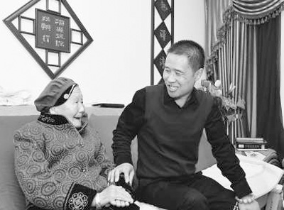 陈雁(右)定期走访看望社区古稀老人。