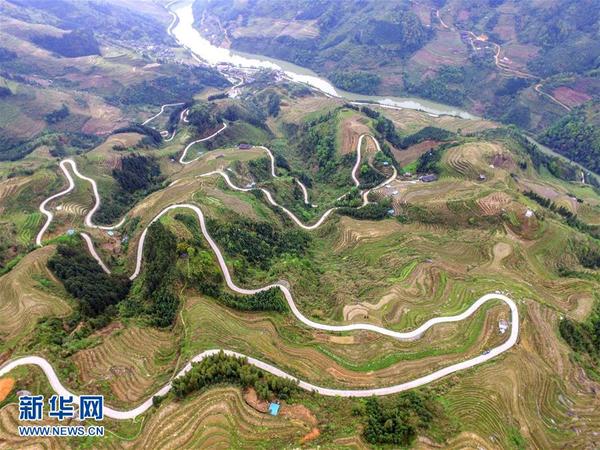 这是4月11日航拍的广西龙胜各族自治县泗水乡细门村的盘山水泥路。