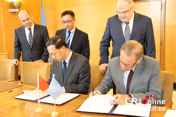 国际在线消息(记者 刘素云):4月11日,中国常驻日内瓦代表团代表马朝旭大使与联合国日内瓦办事处总干事穆勒先生共同就中国捐建“中国厅”签署协议备忘录。万国宫将诞生联合国系统首个以“中国厅”命名的会议厅。