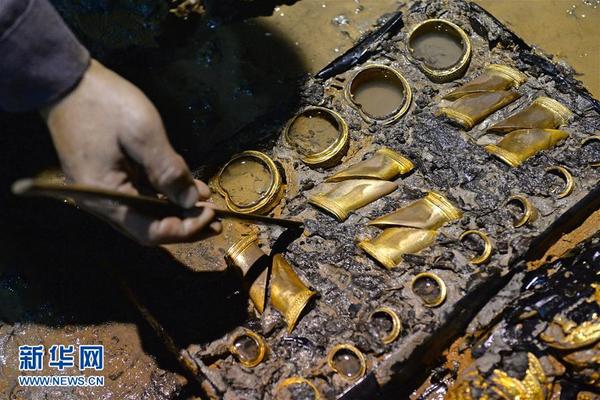 2015年11月17日,考古工作者在南昌西汉海昏侯墓主椁室西侧清理马蹄金。新华社记者 万象 摄