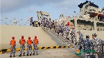中国军网西沙永兴岛4月13日电 记者曲延涛、王雪振摄影报道:上午8时,“军报新媒体西沙纪行”报道组成员与3名网友在西沙永兴岛某军港码头向驻岛官兵告别。离开永兴岛后,报道组与网友继续搭乘某新型补给船前往西沙之行的下一站——琛航岛,而后将进行祭扫烈士陵园等活动。