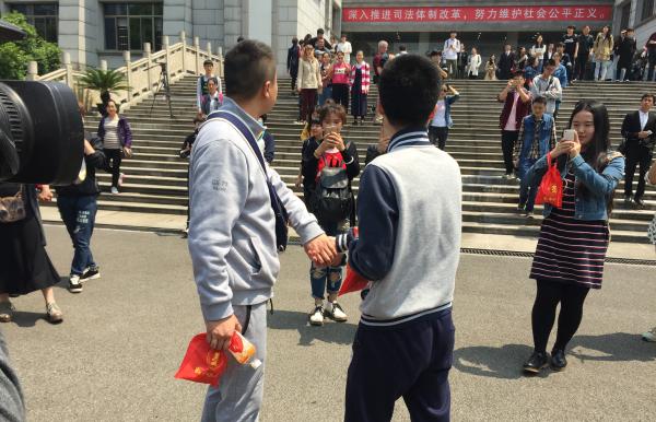 4月13日,全国“同性恋婚姻维权第一案”在湖南长沙芙蓉区人民法院开庭审理,原告孙文麟和同性恋人胡明亮双双出庭,被告长沙芙蓉区民政局则由副局长黄天明出庭,包括媒体记者在内的近200人参加了旁听。