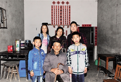 昨日凌晨,涪陵区白涛镇石门乡,潘小莉拉着丈夫和外公、妈妈、弟弟一起照了张全家福。 本报记者 甘侠义 摄