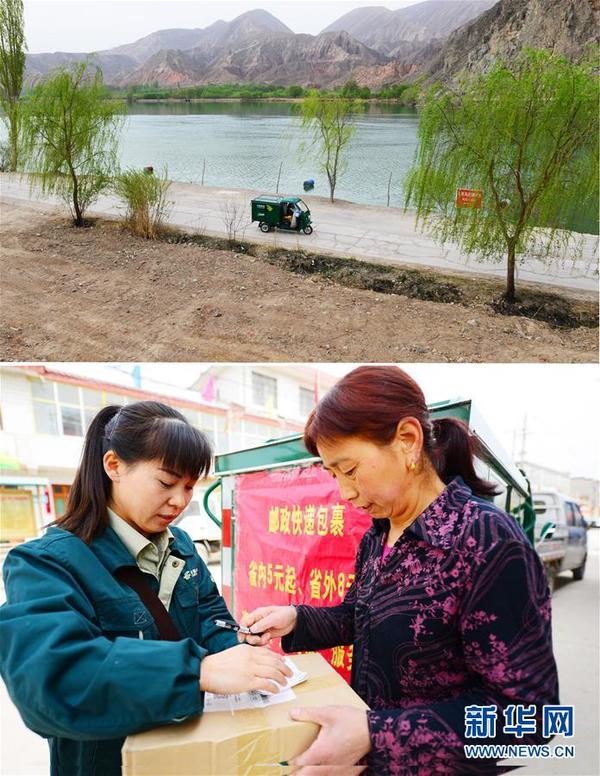 4月13日,一辆邮政快递车行驶在甘肃省永靖县太极镇黄河岸边的公路上(上图);永靖县太极镇下古村村民李玉花(右)为儿子代收从深圳网购的数码产品。眼下,穿梭往来的快递,已成为我国各地城乡的一道独特风景。 “互联网+”联手现代物流,不仅架起了乡村与外界之间的桥梁,缩短了人与人之间的距离,更改变着乡村居民的消费理念和生活方式。伴随车轮的转动,手与手的交接,活跃的经济因子在跳动,丰富的情感在传递,新奇的创业梦想在延伸。当快递遇到乡村,意味着无数个美丽的邂逅。每一次的投递,都寄托着人们对美好生活的向往。 新华社发(史有东 摄)