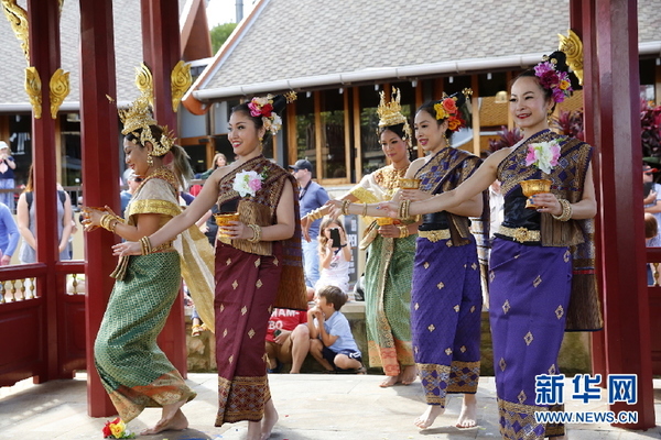 泰国舞者为动物园增添节日气氛。当地时间4月13日,在悉尼塔朗加动物园,为庆祝泰国宋干节,工作人员装扮大象来增添节日气氛。当天还有来自泰国的舞者为到场嘉宾表演舞蹈。新华网发(格雷戈里·季莫普洛斯摄)